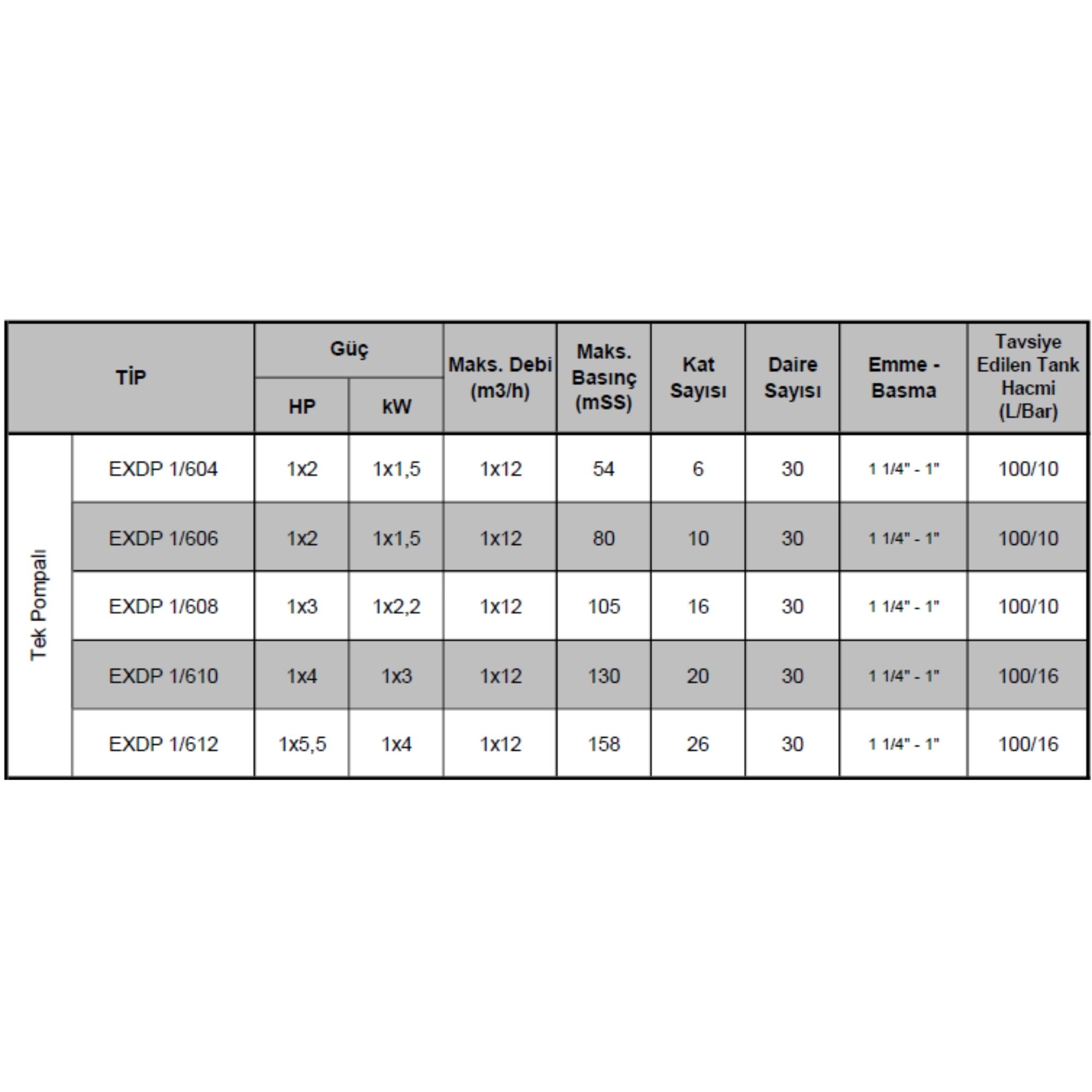 EXDP 1/1500 SERİSİ HİDROFORLAR