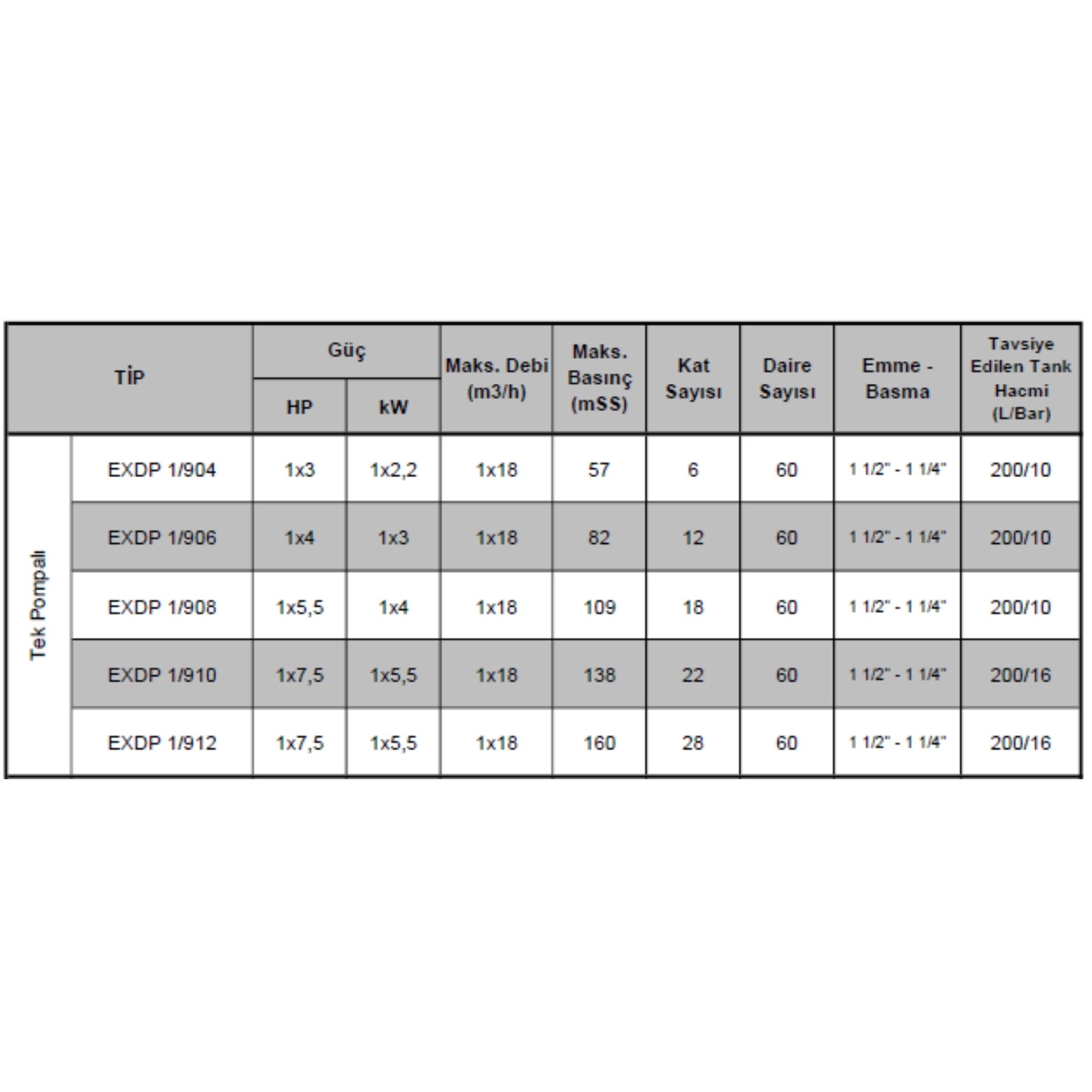EXDP 1/200 SERİSİ HİDROFORLAR