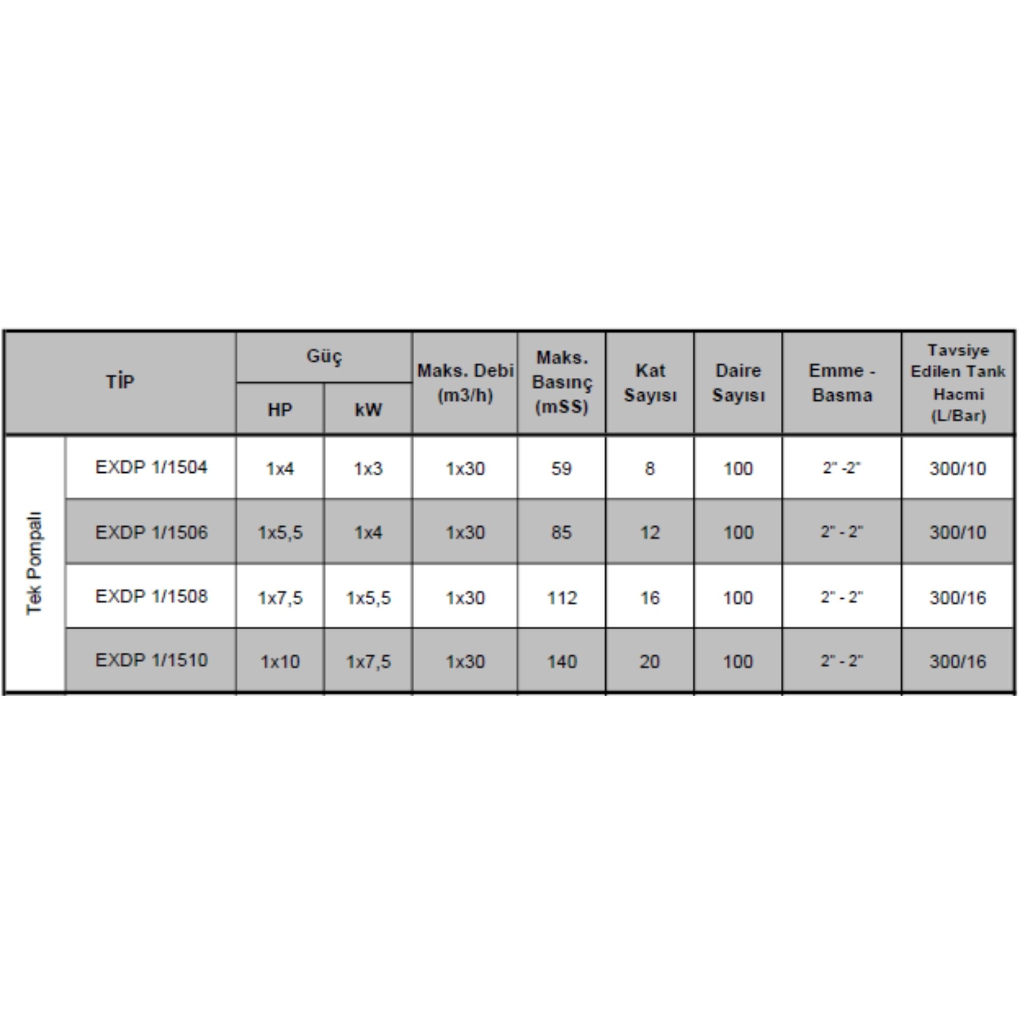 EXDP 1/1500 SERİSİ HİDROFORLAR