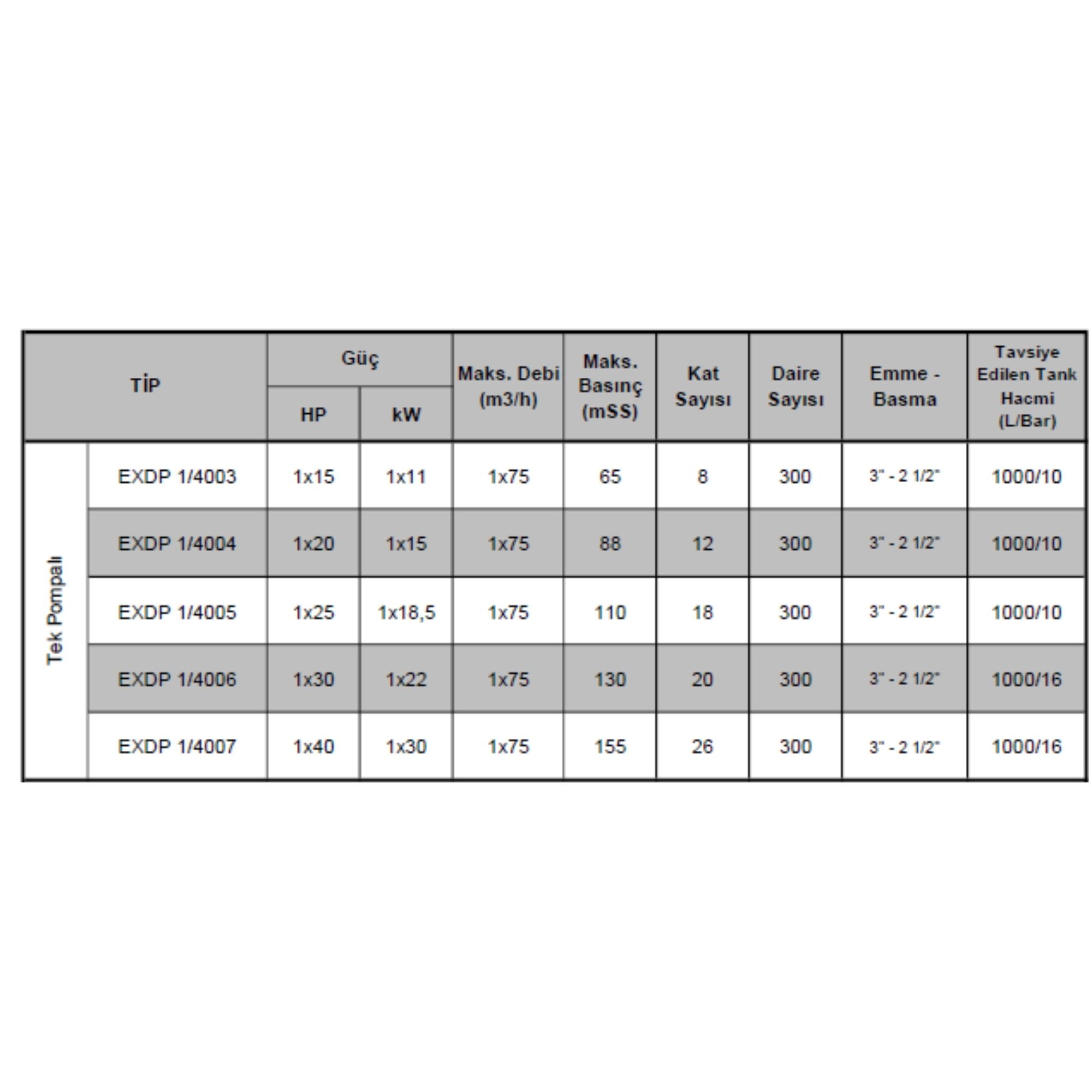 EXDP 1/1500 SERİSİ HİDROFORLAR